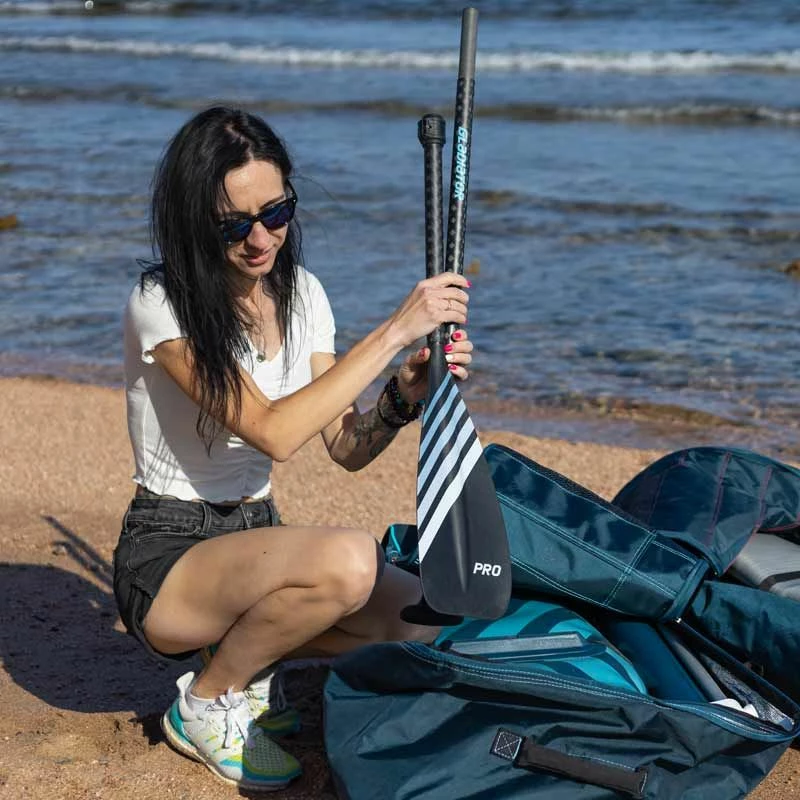 The Paddle: The Gladiator paddles are full 3 piece carbon shaft with nylon blade with comfortable palm handle design. Designed to allow you to paddle with a light durable paddle that fits all heights of riders as well as fitting bag in your Gladiator bag.